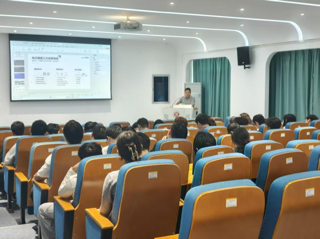 随后,广州鹏辉能源科技股份有限公司代表人作为企业代表上台分享。他从公司的全球布局、核心业务范畴、发展历程及技术创新成果等方面展开介绍,让在场毕业生对企业的规模实力、业务方向有了全面且清晰的认识。他提到,公司在国内外设有多个生产基地与办事处,核心业务以电芯制造为基础,覆盖储能、消费、动力等多个应用场景,为毕业生提供了广阔的职业发展平台,也为后续校企双方的深入交流奠定了基础。