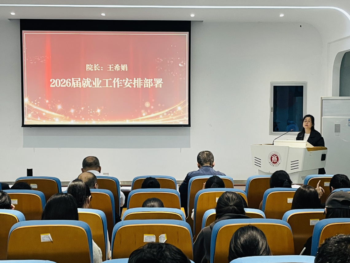 王希娟院长对2026届就业工作作出具体部署。她提出“两步走”战略:本学期实行“月总结”机制,重点推进访企拓岗与专场招聘会,夯实就业资源基础;下学期启动“周汇报”制度,动态跟踪就业进展,确保工作落实落细。她强调,全院要形成合力,构建“全员参与、全过程指导、全方位服务”的就业工作体系,为毕业生提供精准化、个性化就业支持。