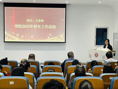 会上,王希娟院长作2025年学院招生工作总结报告。她从招生工作整体情况、关键举措、数据成果及存在不足等方面进行了系统梳理。总结指出:2025年,学院围绕招生目标,通过强化政策宣传、创新推广形式、优化咨询服务等多项举措,同时,报告也客观分析了工作中存在的精准度不足、特色推广力度欠缺等问题,并提出了针对性的改进思路。