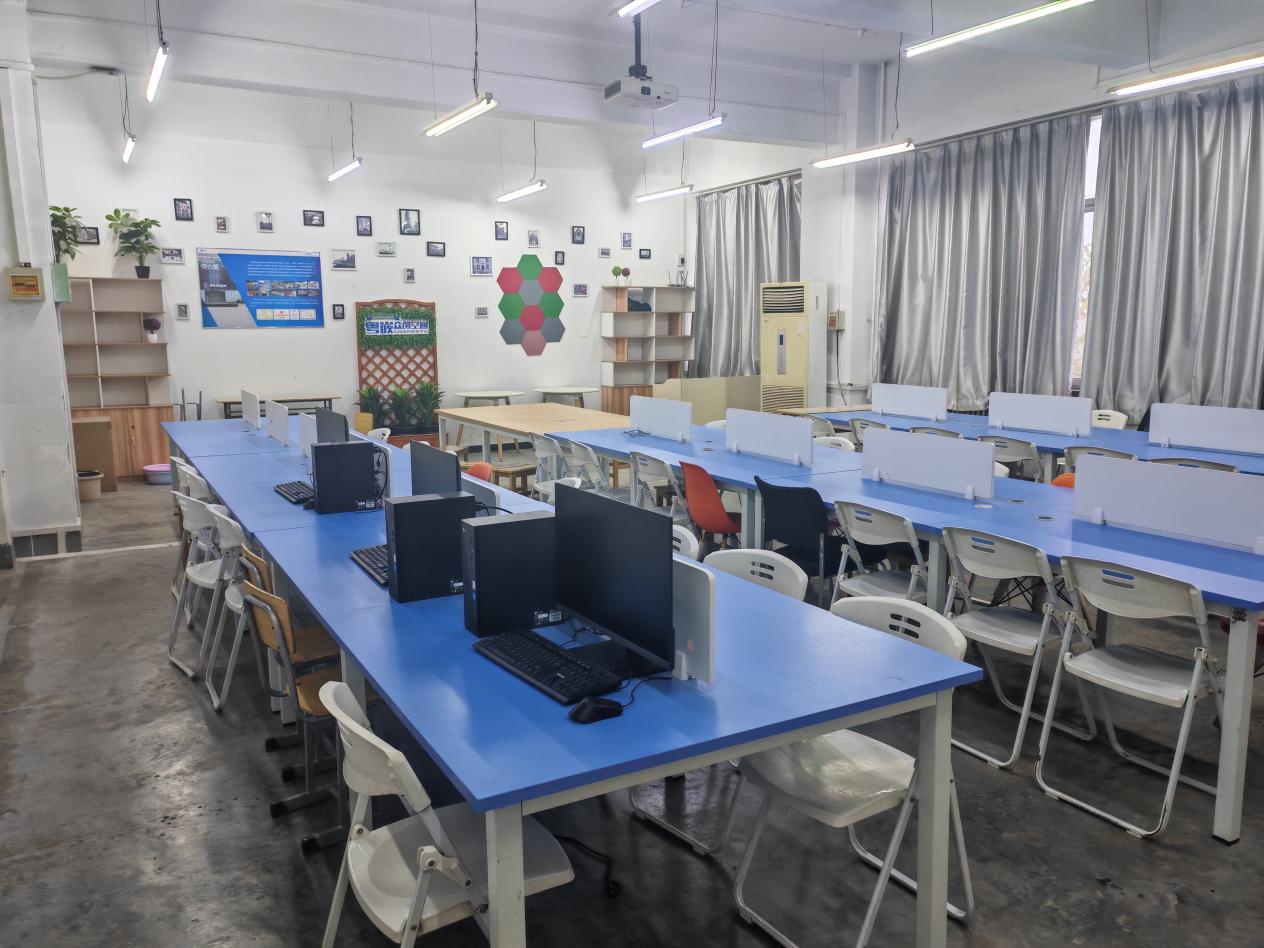 粤嵌嵌入式实验室建于2018年,室内面积90m²,该实验室建设资金为学校和企业共同出资。本实验室配有:投影系统1套、音响系统1套、无线路由器、交换机等设备,总价值约20万元,本实验室以促进和实现科技领域新发展为目的,以互联网+、物联网、智能硬件、VR技术、工业4.0等为导向。在硬件支撑、政商服务、技术支撑、教育服务、融资服务多领域,为我院师生创客提供强大、全面的创新创业服务。